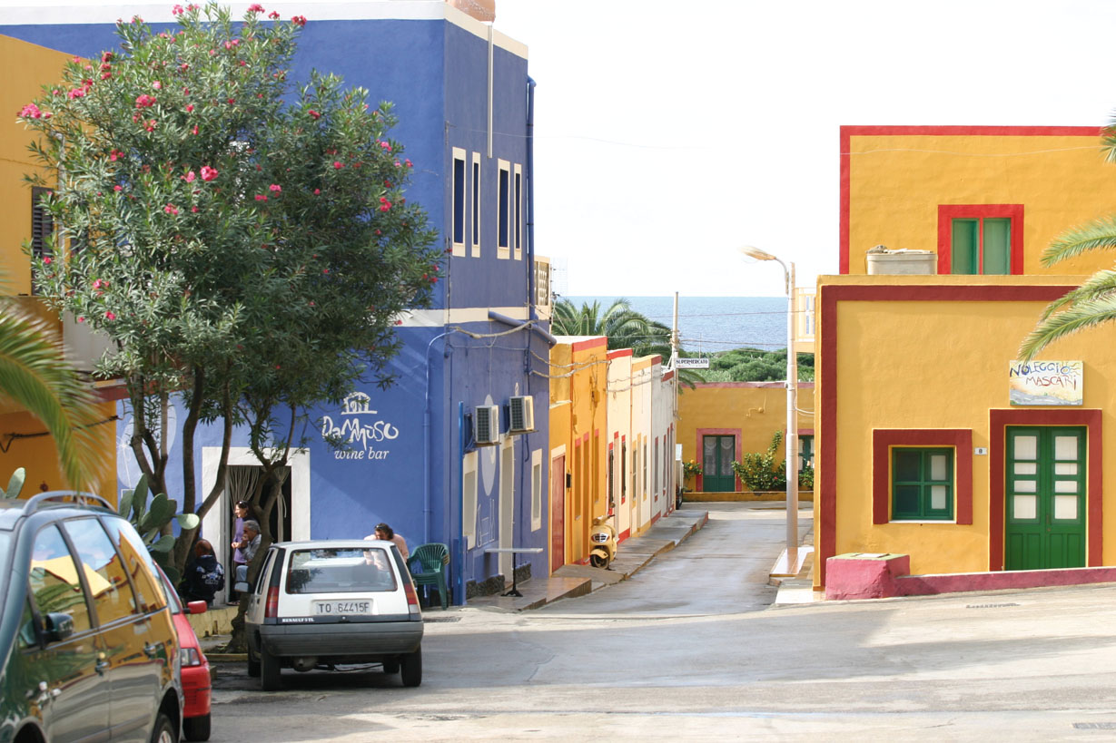 Le due vie principali dove sono ubicati anche i pochi negozi dell’isola e l’ufficio postale, sono la via Re Umberto e la via Alfieri. La prima si snoda dallo scalo vecchio sino ad arrivare alla casa della rappresentanza municipale. Da qui la seconda si allunga verso l’area interna dell’isola in direzione di Monte Vulcano.