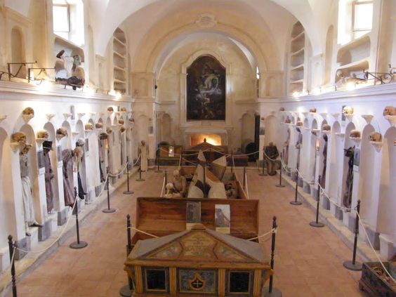 All'interno del Convento dei Cappuccini, recentemente restaurato, sono state recuperate le mummie insieme a vestiti e monili originari. Una inquietante passeggiata tra scheletri ed arredi funebri risalenti al XVIII ed al XIX secolo, mummificati secondo le tecniche antiche dei frati francescani.