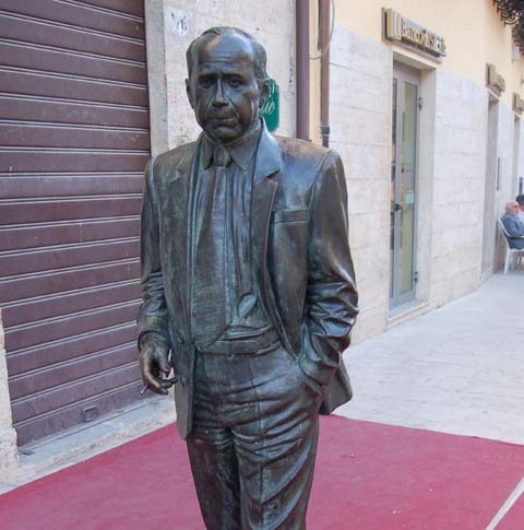Racalmuto, il "paese della ragione" ha dato i natali allo scrittore Leonardo Sciascia e oggi una statua bronzea in proporzioni reali è stata posto lungo il corso cittadino.