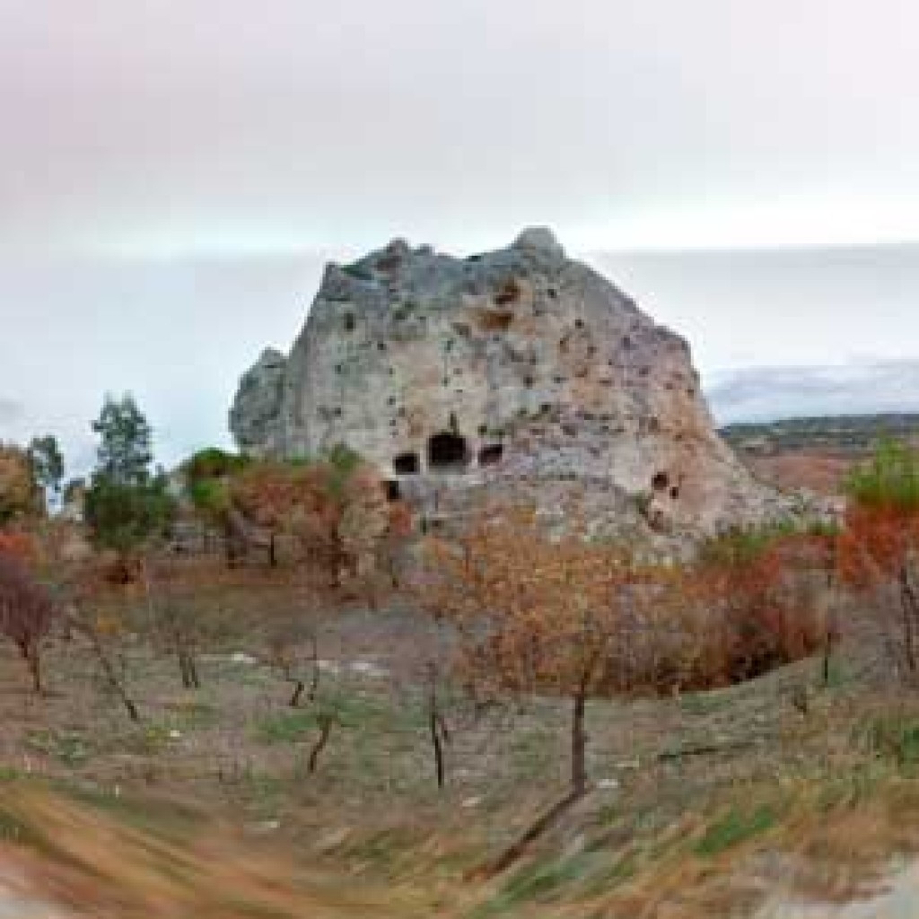 Le tombe a forno e i ritrovamenti archeologici, confermano l'esistenza di un villaggio preistorico, ma è nel periodo bizantino che nelle sue viscere si forma un fitto complesso di ambienti e gallerie su più livelli, che danno origine a una fortezza preposta al controllo del territorio e delle vie di comunicazione che lo attraversavano. Questa funzione venne mantenuta anche nel periodo arabo, poi normanno e fino al XIII secolo.